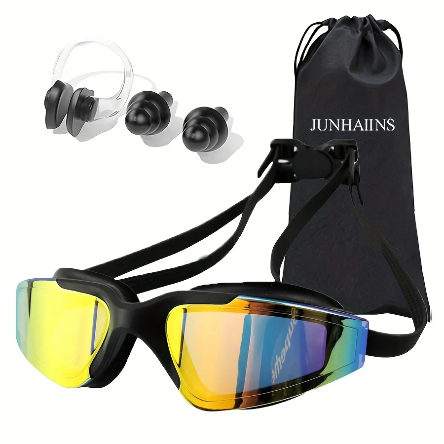 This isn't just swimming goggles! The package includes a storage bag to keep your goggles safe when not in use, a pair of earplugs to block out water and noise, and a nose clip to prevent water from entering your nose. It's a one - stop solution for all your water sports needs, whether you're swimming, surfing, or doing other water activities.